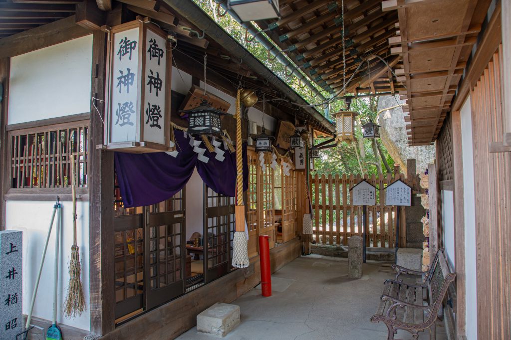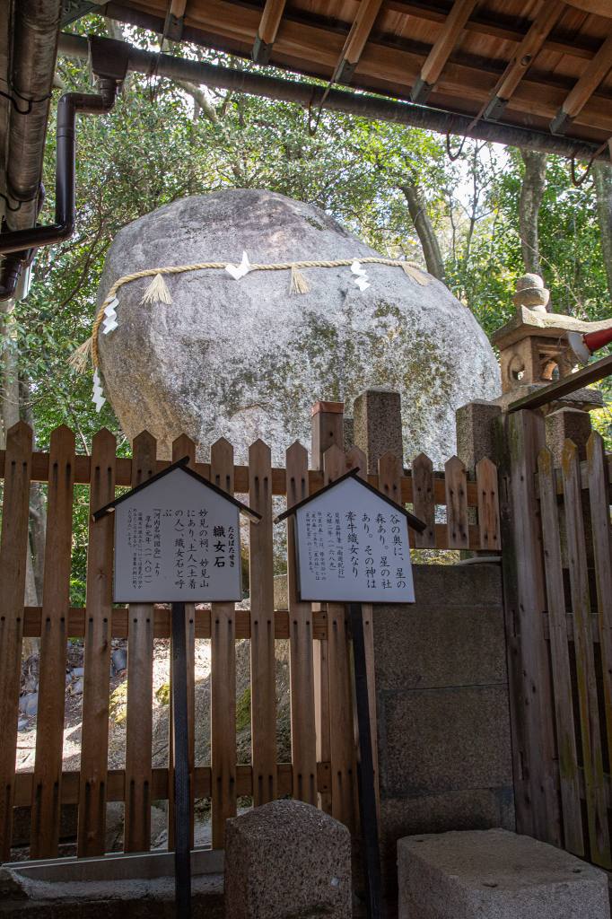 この神社は「降星伝説」というのがあって、約1200年前の平安時代に、弘法大師空海が獅子窟寺の獅子窟(獅子が咆哮した口の形に似た巨岩群)で、修行をしていた時に北斗七星が降り、三ヵ所にわかれて落ちた場所の一つだという。。