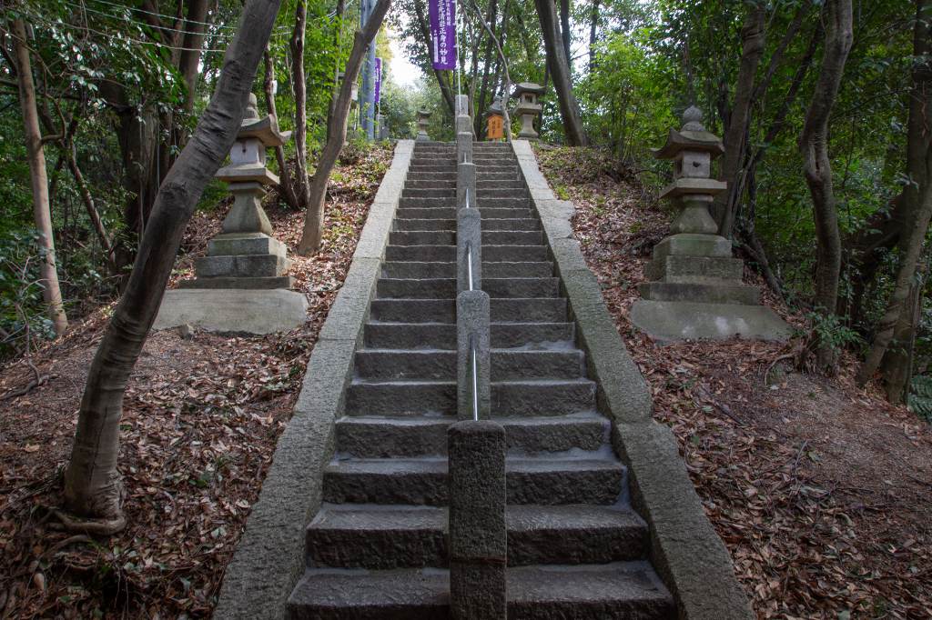 登り口が見えてきました。めちゃ急な石段が現れました。最近行く神社はこんなのばっかりで。。